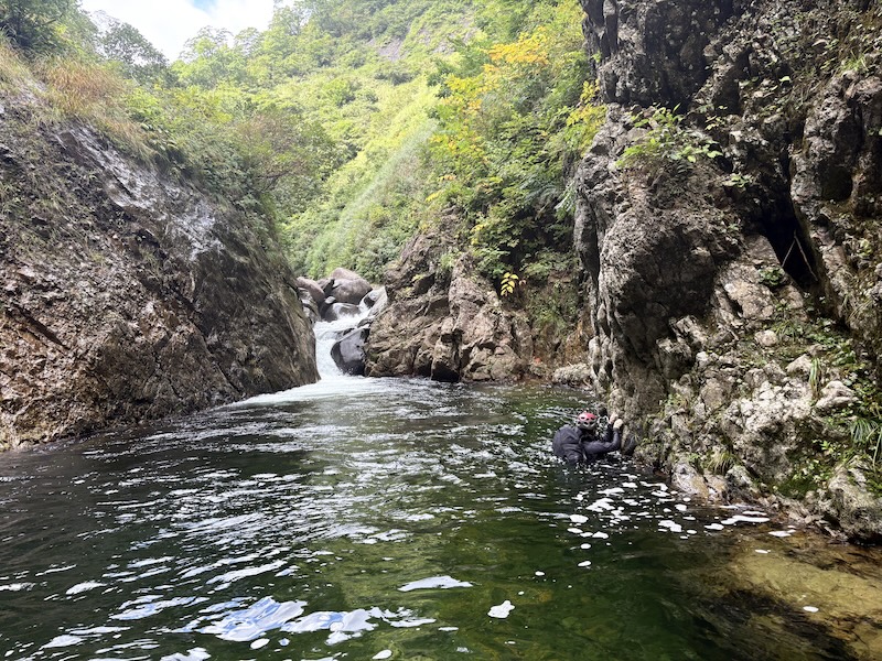 9月も終盤となり、泳ぎの沢は厳しいか、とも思ったが、ウェットスーツで固めてきたので許容範囲の寒さだ。